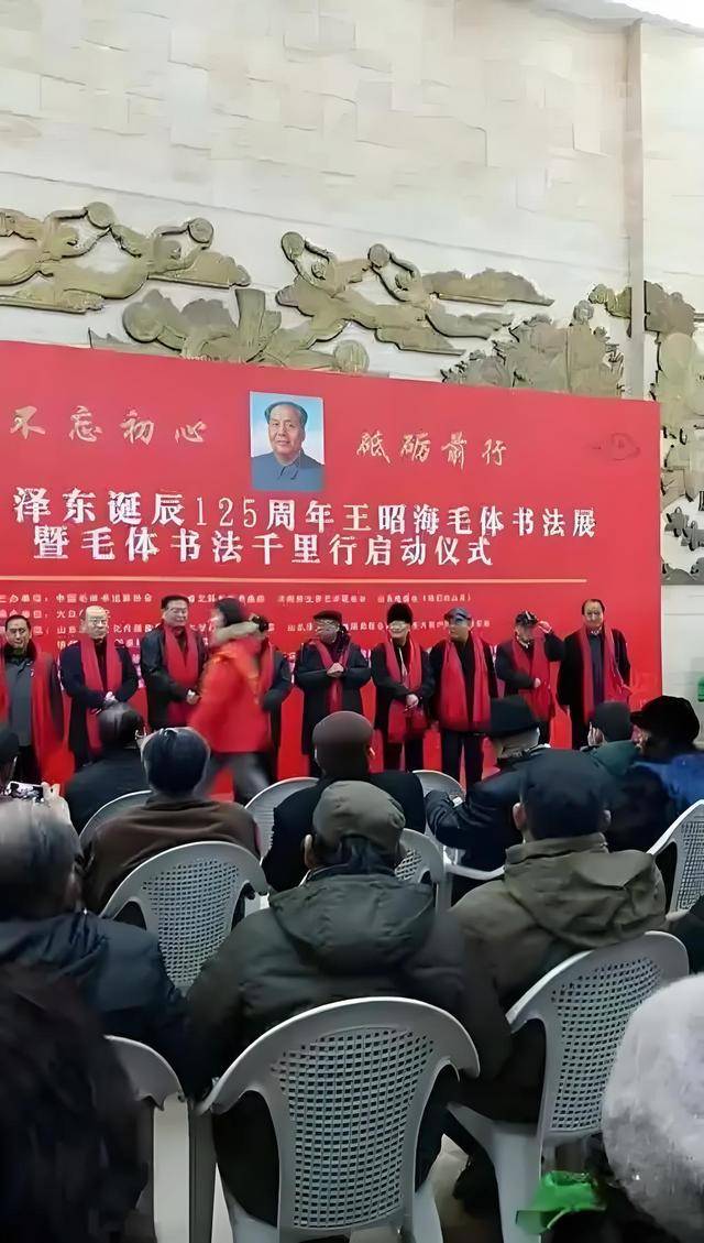 历尽艰辛,终成大道。在趵突泉举办的纪念毛泽东诞辰123周年王昭海毛体书法展开幕式上,一位跟随伟人十多年的贴身卫士在仔细观赏70多幅书法后说:我参加过许多地方的毛体书法展,水平参差不齐。在全国不敢说,但在山东,王昭海堪称毛体书法第一人。现场讲话时,这位退休老领导热泪盈眶,向王昭海郑重行了个军礼!