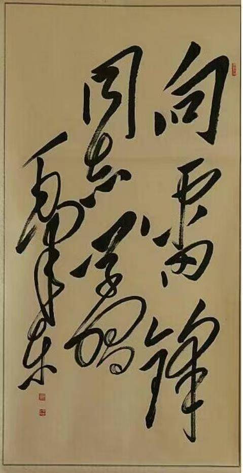 王昭海对毛体书法产生兴趣并潜心研习,要追溯到八、九十年代,那时他还是省直机关的一名年轻干部,读书看报时经常会看到伟人手迹,如:“农业学大寨”、“愚公移山,改造中国……”以及《人民日报》《大众日报》的报头等等,常被伟人那雷霆万钧的笔力和排山倒海的笔势所震撼!
