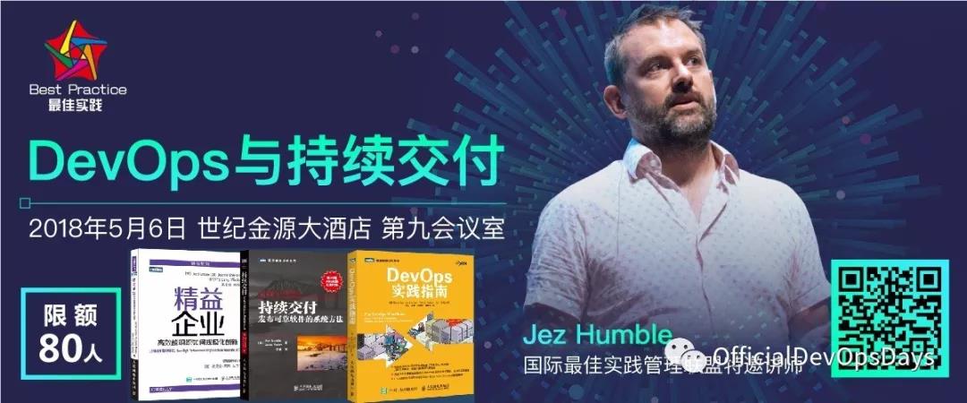 全球DevOps四大天王之首,素有”持续交付之父”美誉的JezHumble先生已确认出席5月5日DevOpsDays 北京站活动和晚宴。并将在5月6日提供全天“DevOps与持续交付”的限额闭门实训,届时《持续交付》的中文版译者,乔梁老师也将与JezHumble十年后再次同台聚首,为大家奉献一场“DevOps与持续交付”的盛宴!