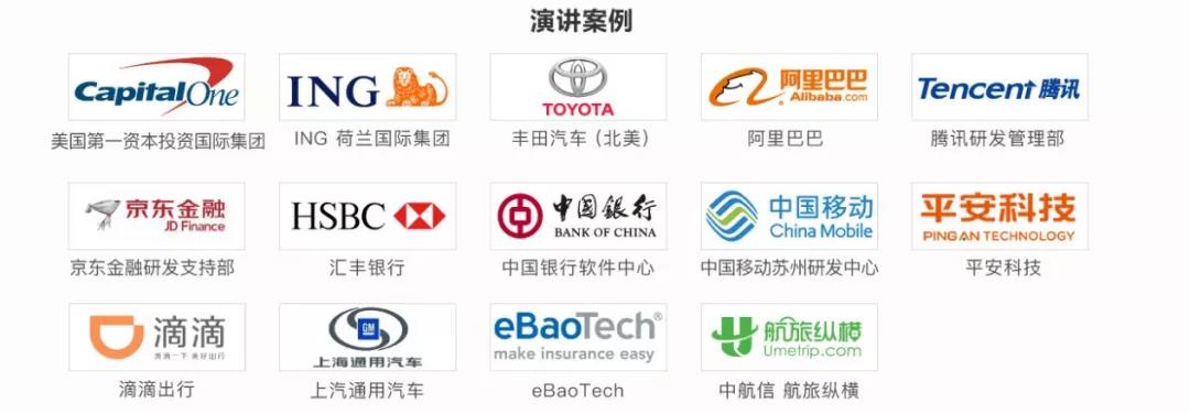 大会特别邀请到来自国内外各行业的演讲嘉宾来分享各自的DevOps实践,其中涵盖了丰田汽车、巴克莱银行、中国银行、通用汽车、腾讯、阿里、京东、航旅纵横、华为、中国移动、平安科技等几十家DevOps实践主题分享。